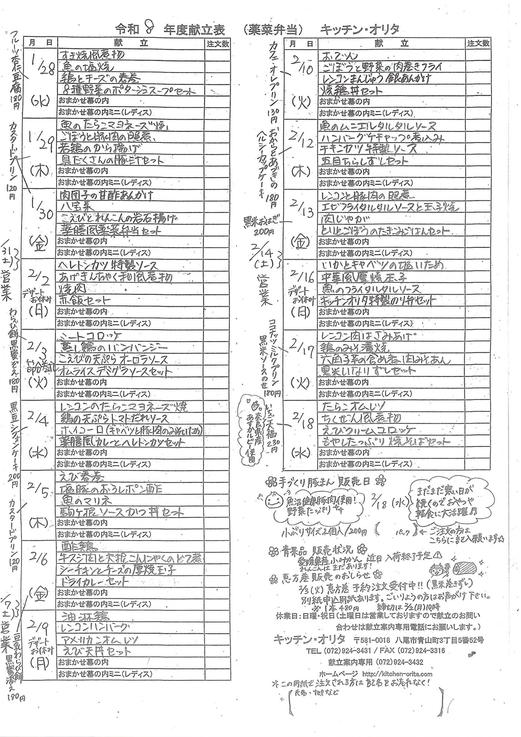 今月のメニューをご確認のうえ、 ご注文下さい。